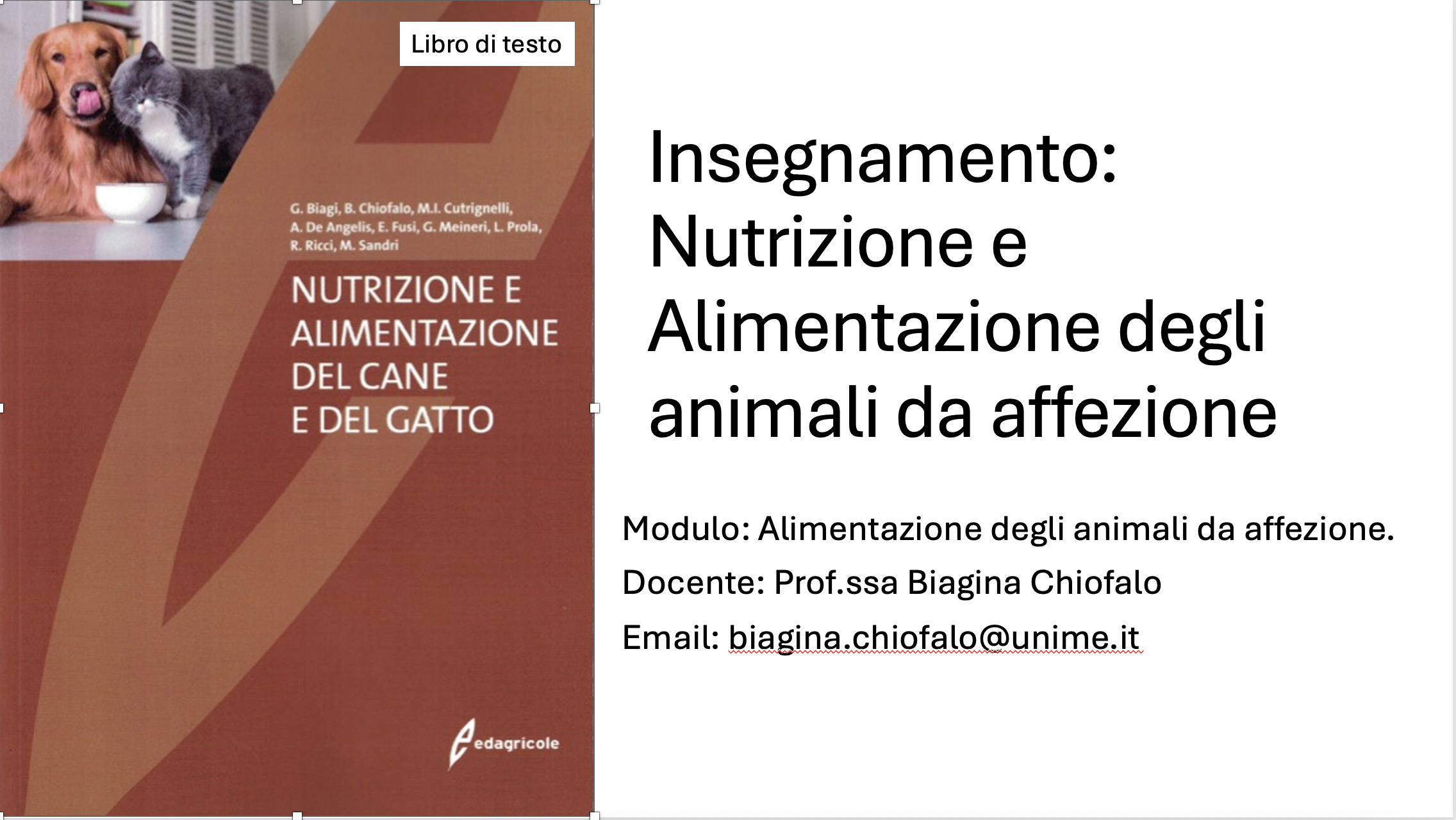 2025-2026 > Dipartimento di Scienze Veterinarie > Corsi di laurea magistrali a ciclo unico > [2011] Medicina Veterinaria > 25-26 Alimentazione Degli Animali Da Affezione